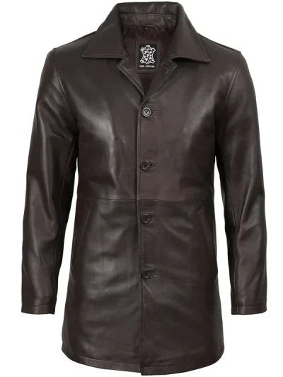 Winchester Men’s Distressed Dark Brown Leather Car Coat