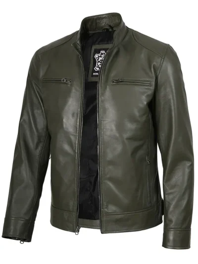 Dodge Mens Green Cafe Racer Real Leather Jacket
