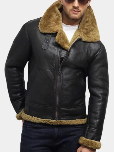 Handmade Men’s RAF B3 Sheepskin Aviator Jacket – Real Leather Bomber Pilot Coat, Winter Gift for Him