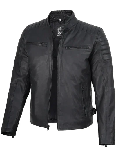 Bickford Mens Black Cafe Racer Real Leather Jacket
