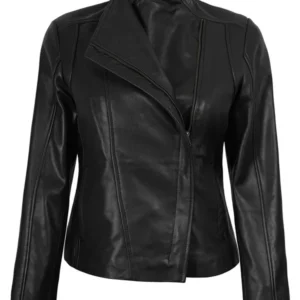 Women’s Black Asymmetrical Biker Style Leather Jacket