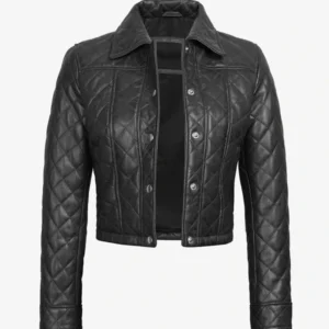 Womens Quilted Black Cropped Leather Jacket
