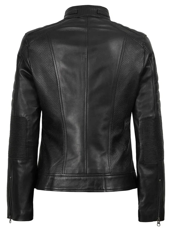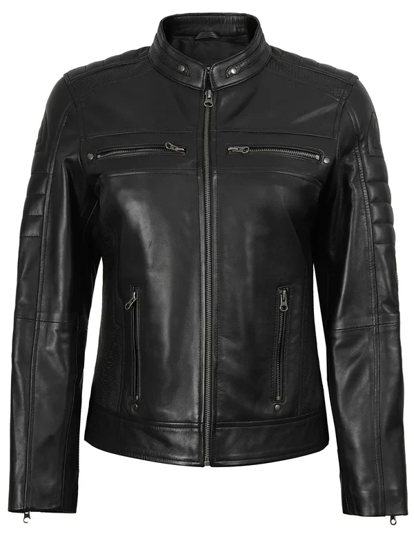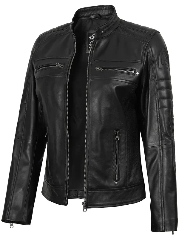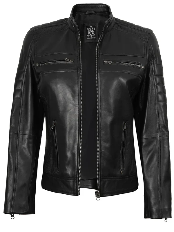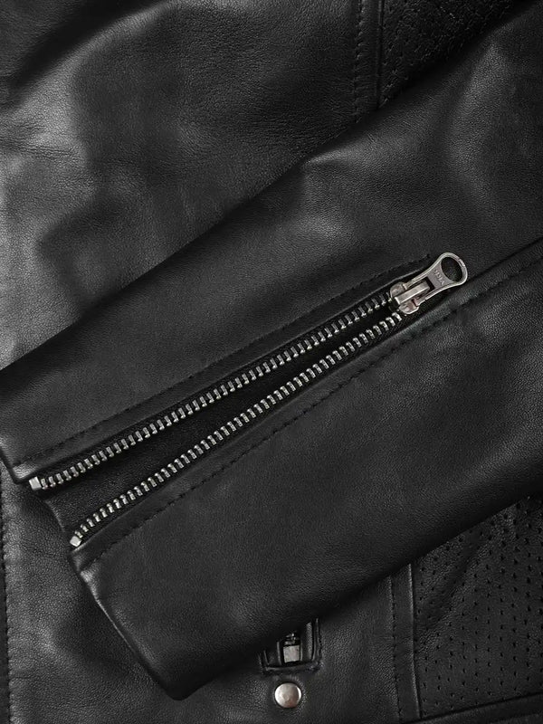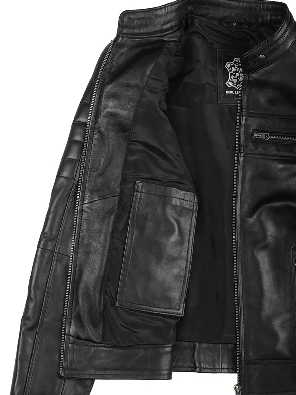 Own the streets with the Austin black leather jacket, crafted from 100% real lambskin for a sleek, durable finish. With padded shoulders and zippered details, it’s built for bold looks and all-day comfort.