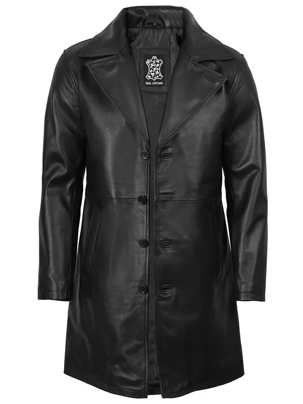 Introducing the Jackson Men’s Black 3/4 Length Leather Car Coat, an embodiment of timeless sophistication and understated luxury. This exceptional car coat, meticulously crafted from premium black leather, redefines classic elegance with its unique 3/4 length design.