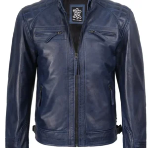 Men’s Blue Wax Cafe Racer Leather Jacket