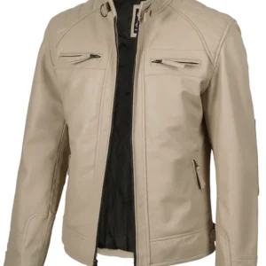 Men’s Beige Cafe Racer Leather Jacket