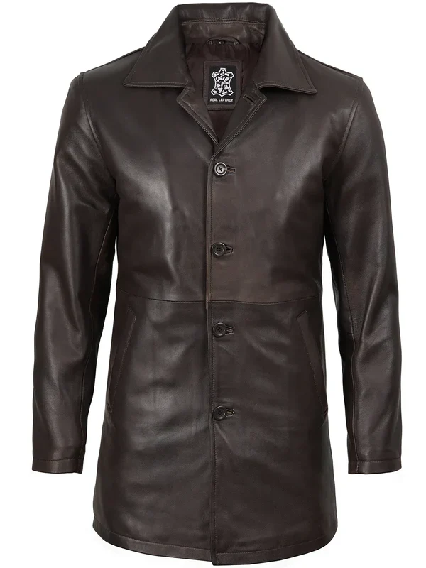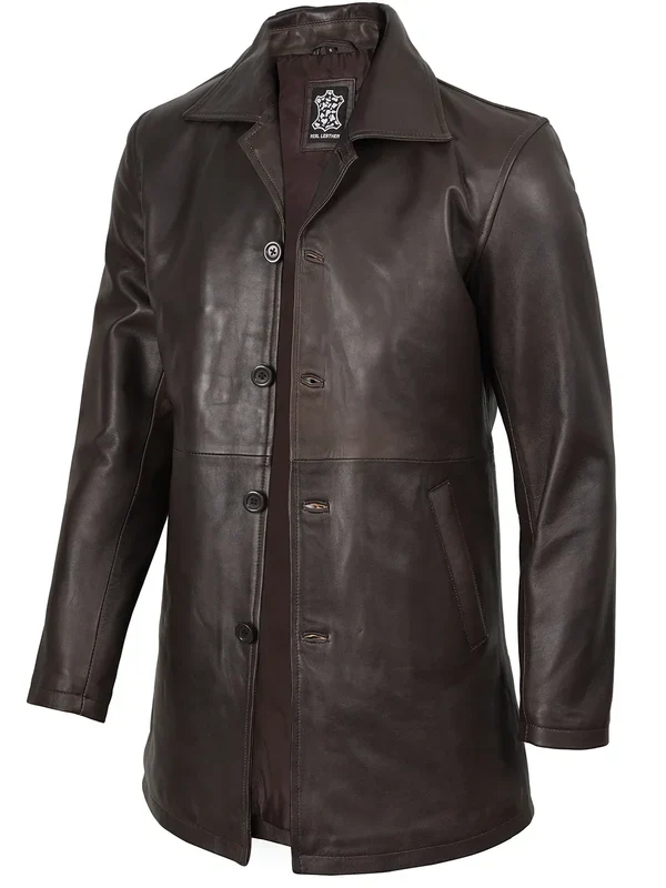 Built for a rugged look, the Winchester style leather car coat is crafted from real leather and lined with soft polyester for lasting comfort. It features a distressed finish, standard collar, button closure, and four spacious pockets for function and style. Ideal for everyday wear with a sturdy edge.