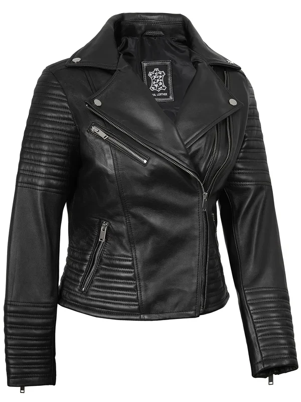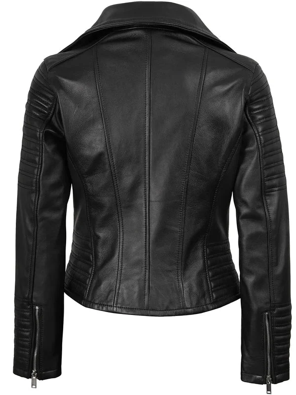 Style up your wardrobe with the Women’s Black Asymmetrical Biker Style Leather Jacket. Expertly crafted, this versatile piece features a sleek black hue and asymmetrical design for a touch of sophistication and individuality—a must-have addition to your collection.