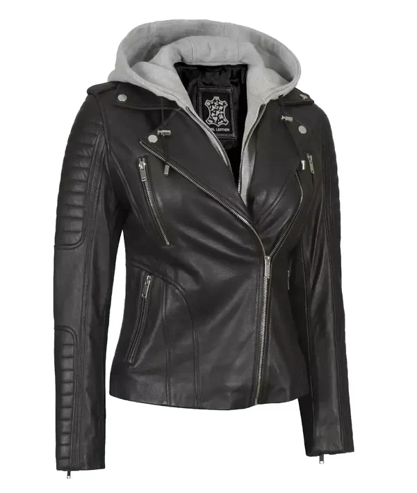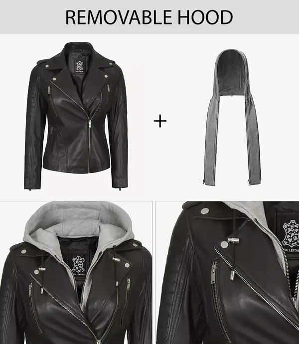 Rev up your style with the Bagheria Black Leather Biker Style Jacket, featuring a removable hood for versatility. This iconic piece effortlessly combines edginess and comfort, perfect for city streets or outdoor excursions.