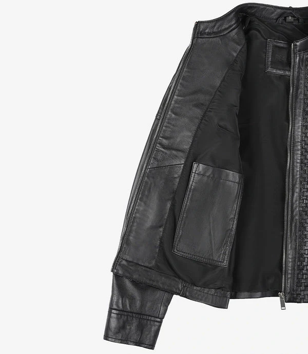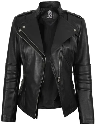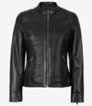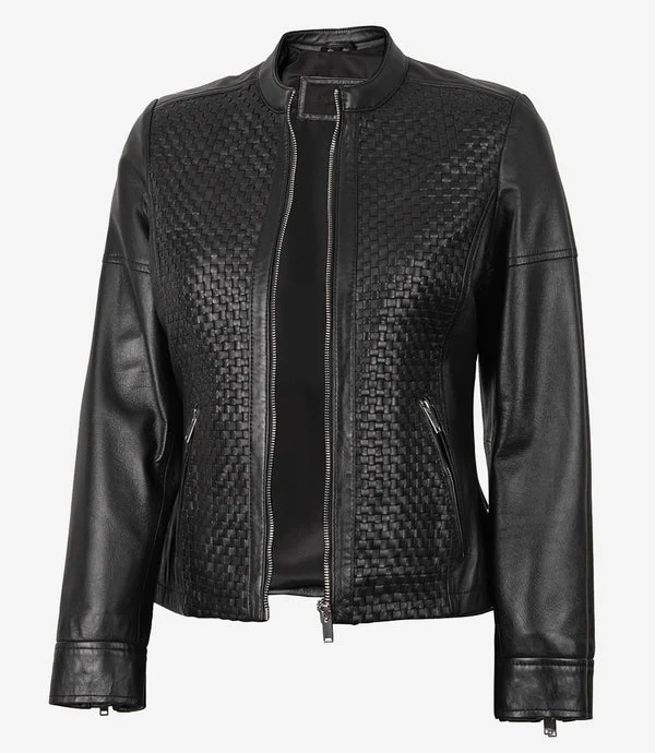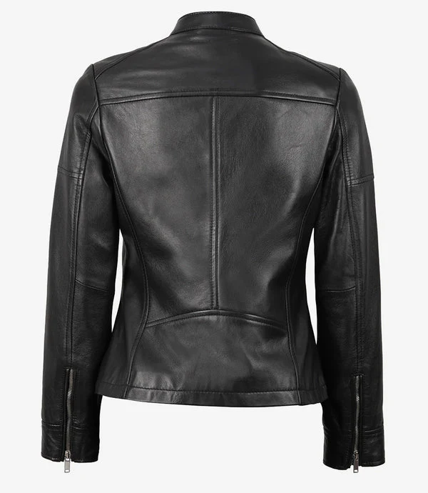 Introducing the Maude Women’s Black Textured Cafe Racer Leather Jacket – a captivating blend of bold style and elegance. Crafted with meticulous attention to detail, this jacket is a true fashion statement that caters to the modern woman’s desire for sophistication with an edge.