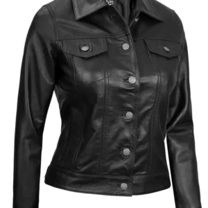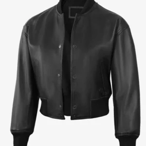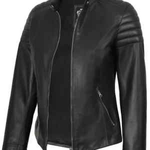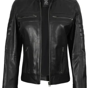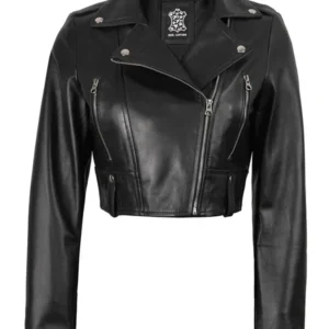 Colleen Women’s Cropped Black Biker Style Leather Jacket