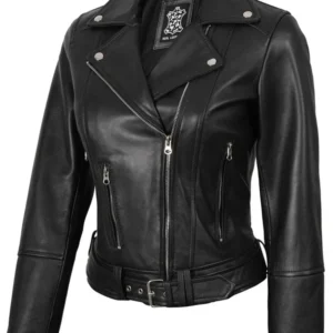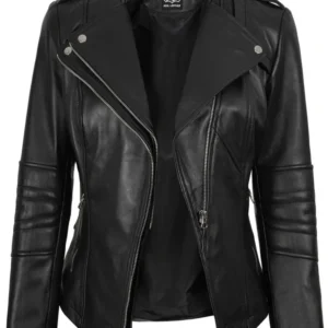 Womens Asymmetrical Black Biker Style Leather Jacket