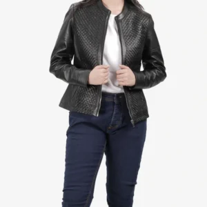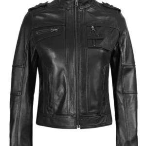 Women’s Black Textured Cafe Racer Leather Jacket