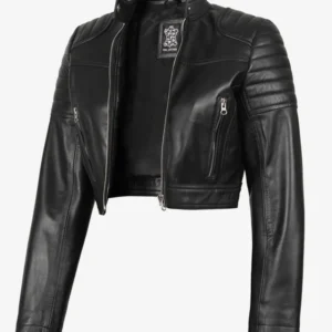 Women’s Black Cropped Leather Biker Style Jacket