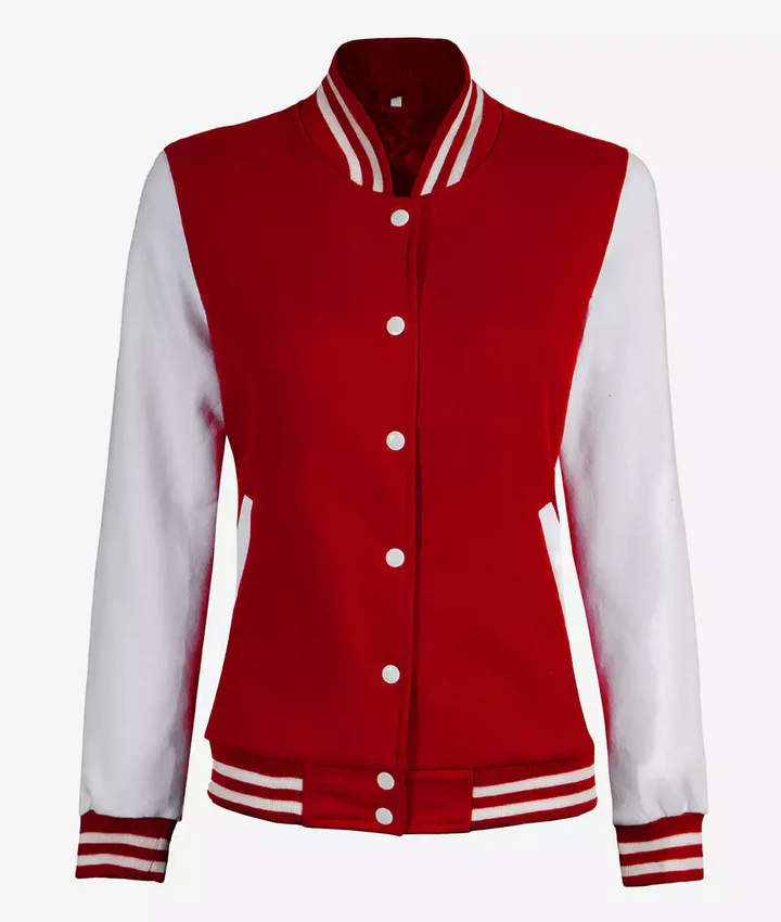 Step up your style with this Women’s Red Varsity Jacket with White Sleeves. Designed for comfort and durability, its classic letterman design makes it perfect for casual outings or school events. The bold red body with white detailing ensures a standout look that pairs effortlessly with jeans or skirts.