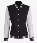 Turn heads with this Women’s White and Black Baseball-Style Varsity Jacket, blending athletic charm with urban sophistication. The crisp black base with white sleeves offers versatility, making it easy to pair with any outfit. Crafted from premium fleece with a soft polyester lining, it ensures both comfort and durability.